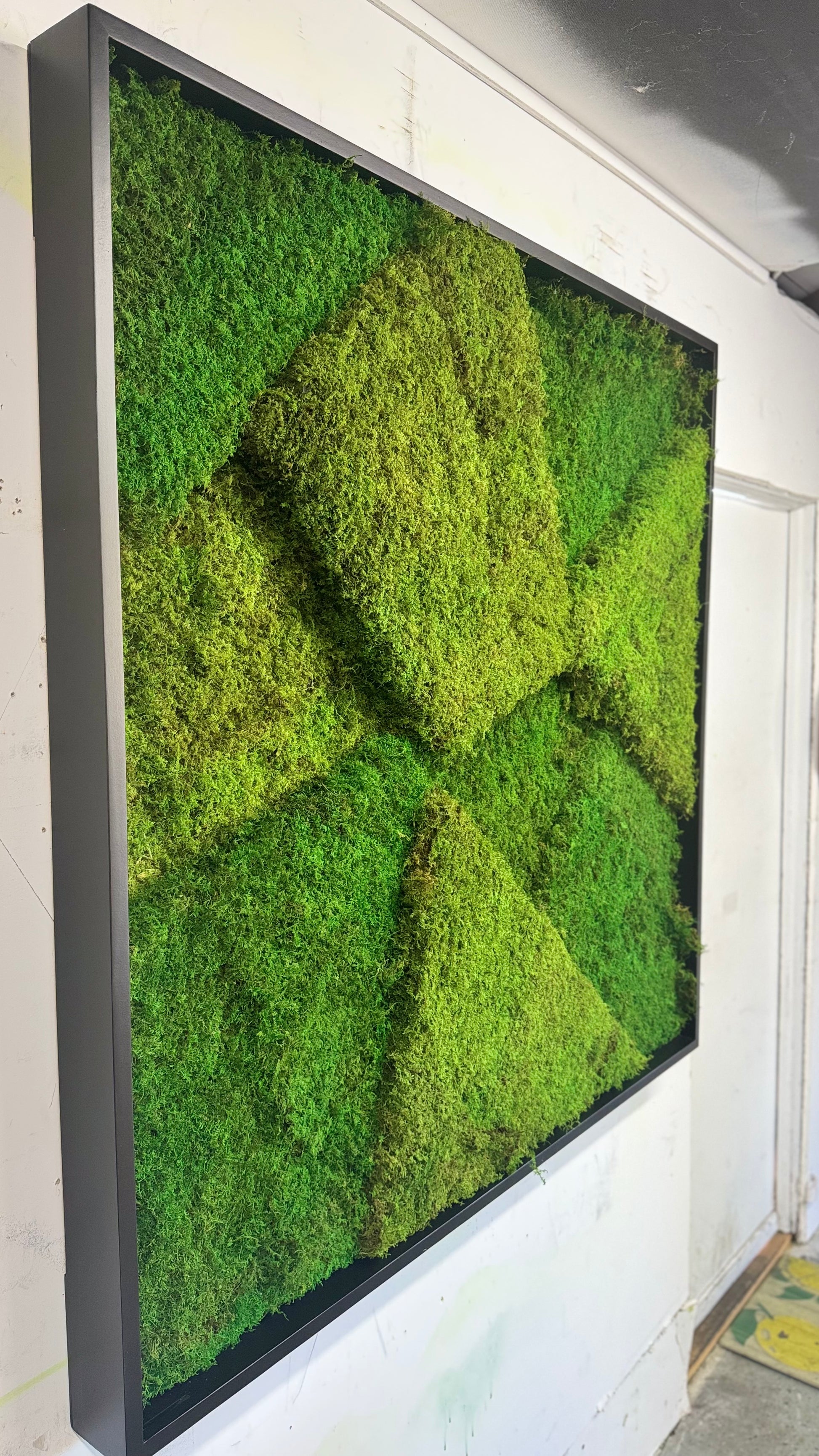 Our Moss Art Panels embody the beauty of layered landscapes, blending lush green sheet moss into a captivating terraced design. The 3D composition is brought to life through the dynamic interplay of vibrant spring greens and deep forest hues, creating depth and dimension that feels both immersive and organic.