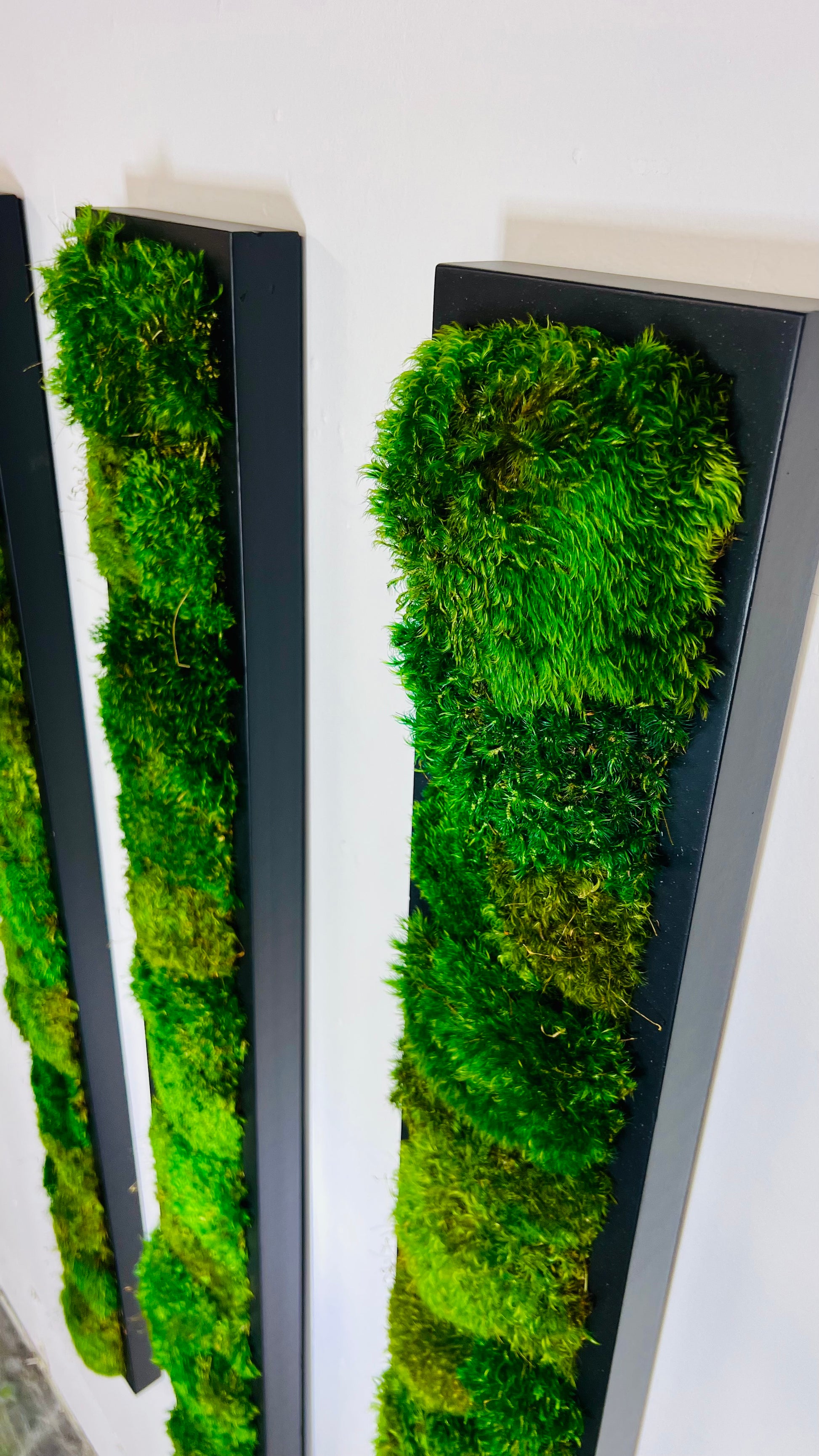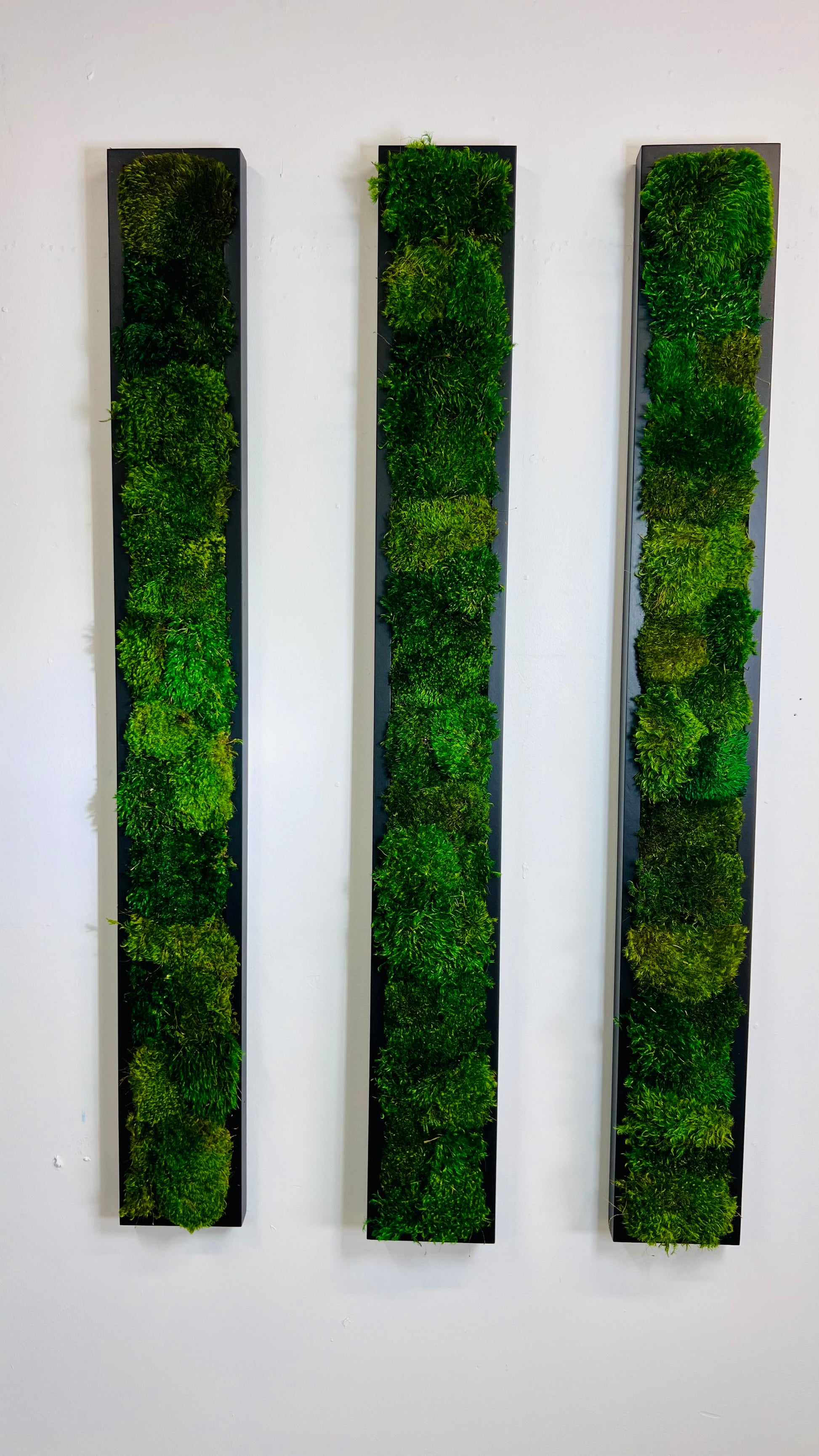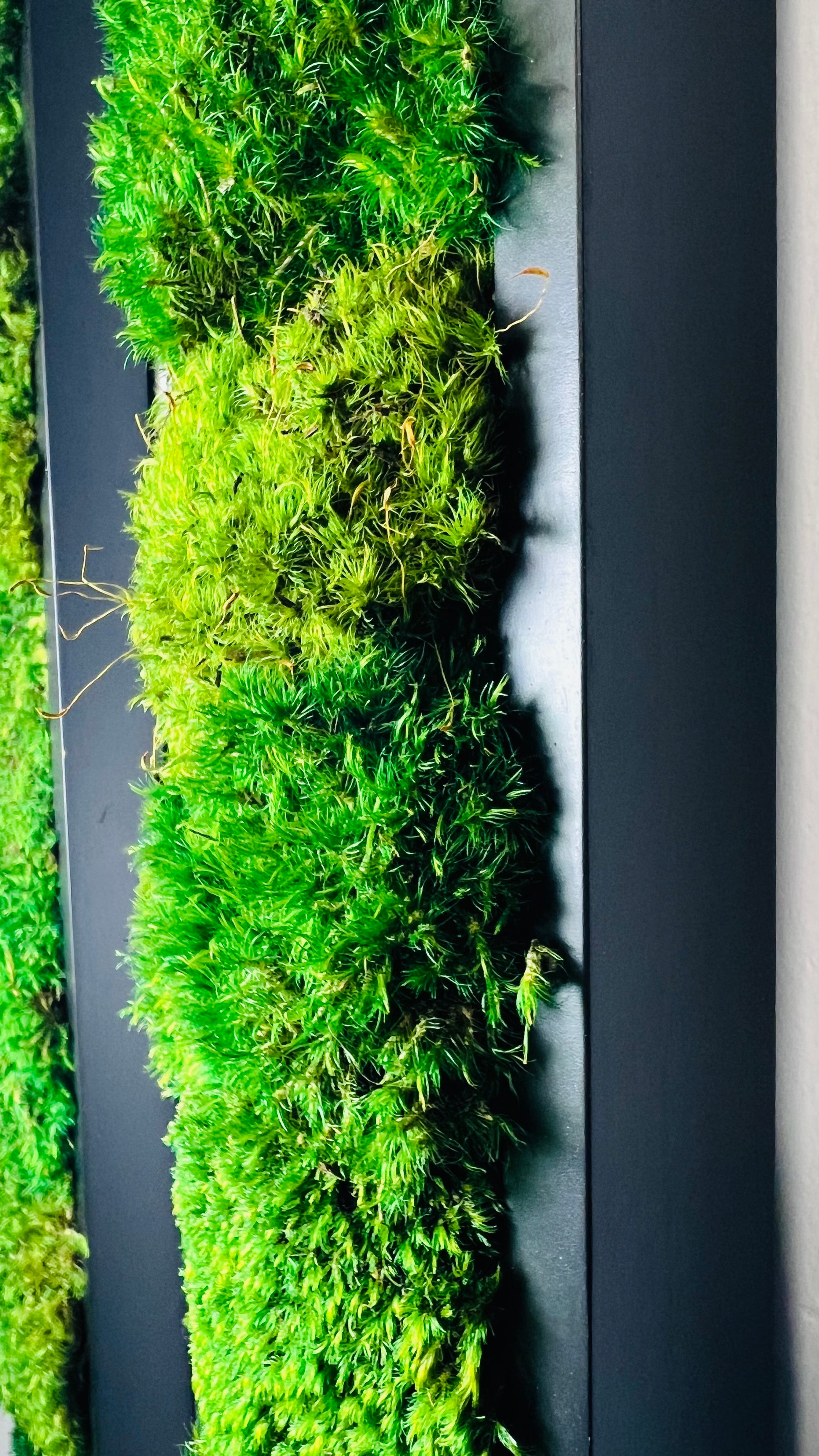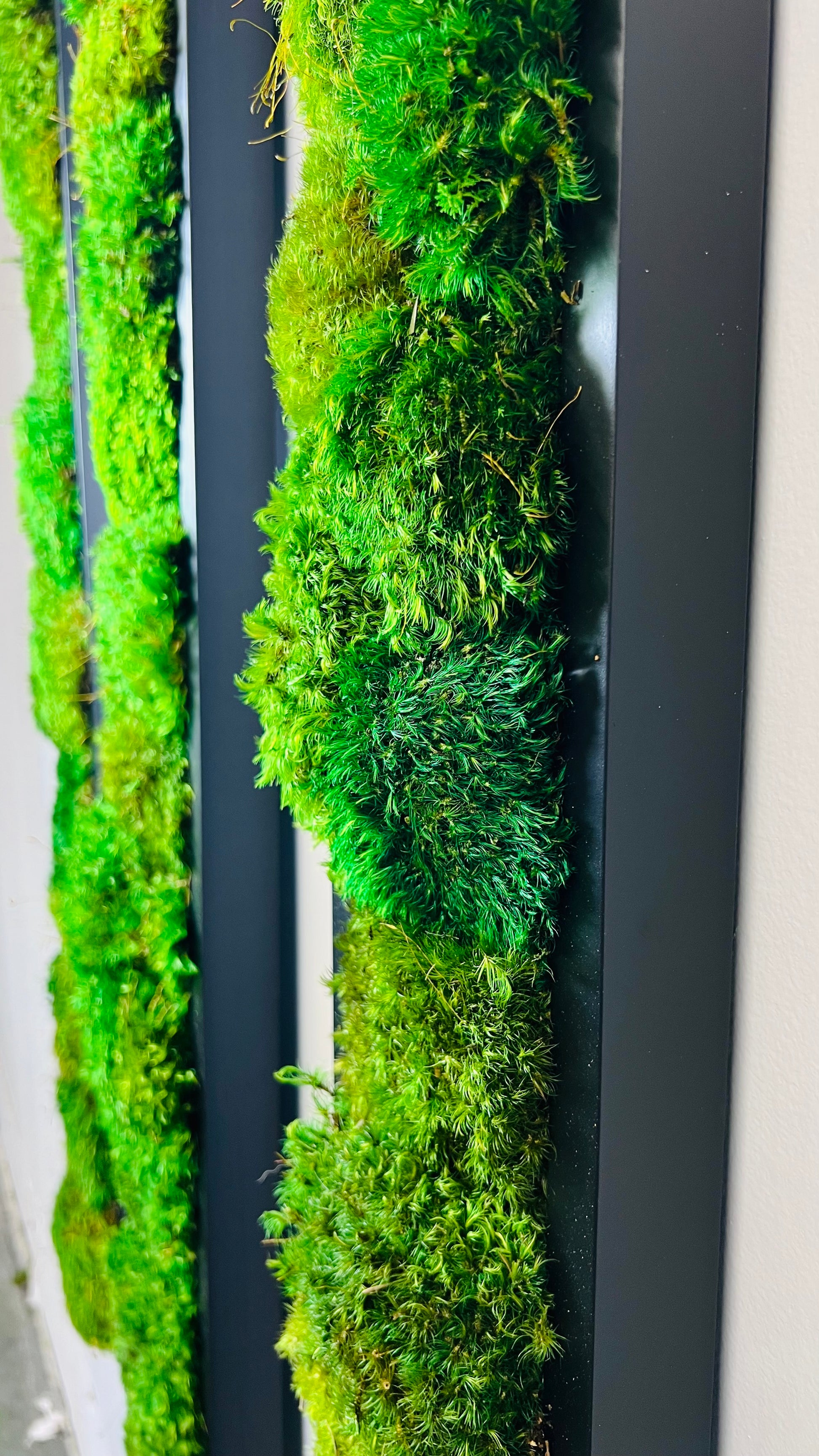 Lush Pillow Moss: Each panel showcases soft, velvety mounds of preserved pillow moss, creating a textured, three-dimensional landscape that exudes natural elegance.