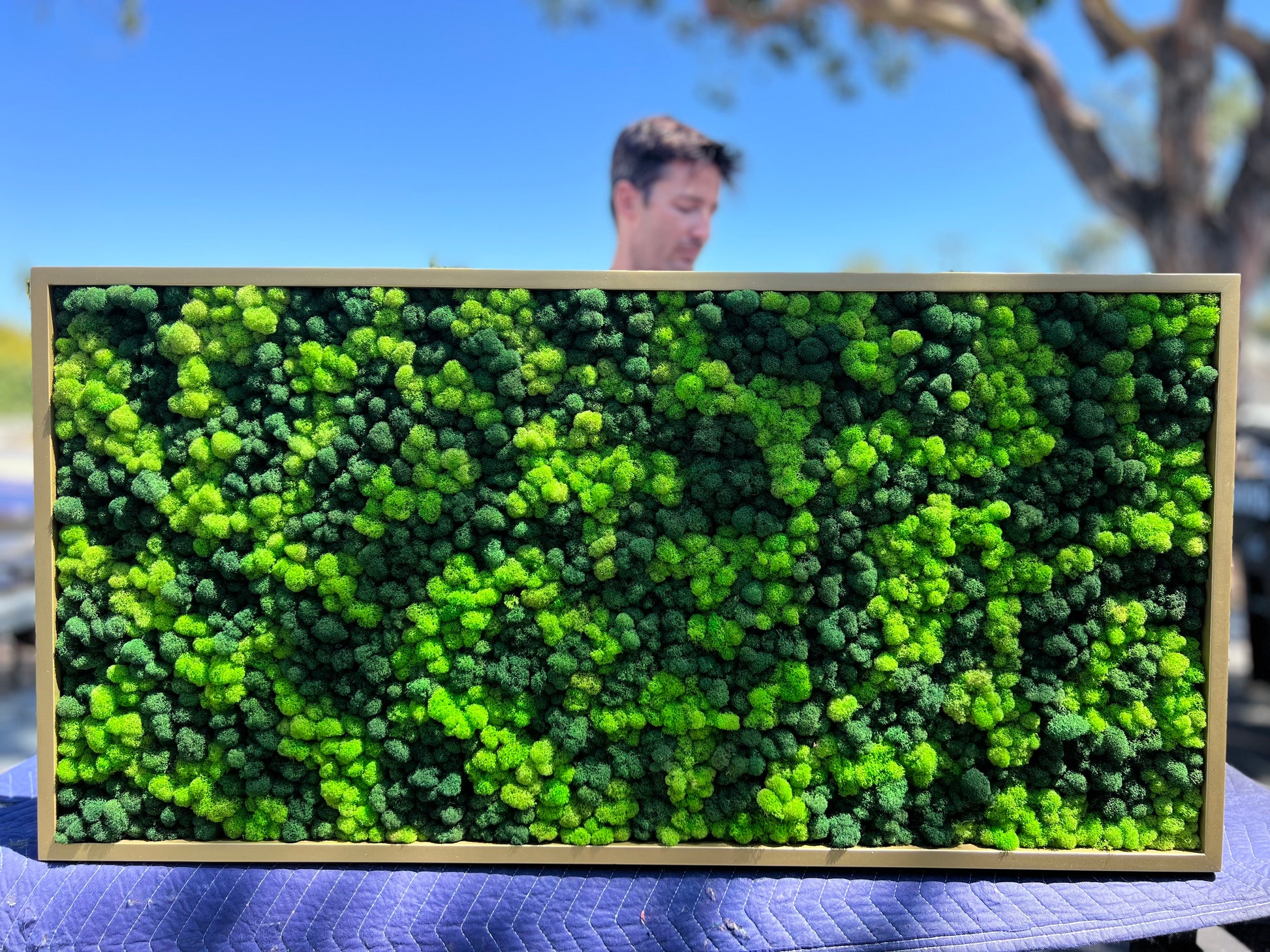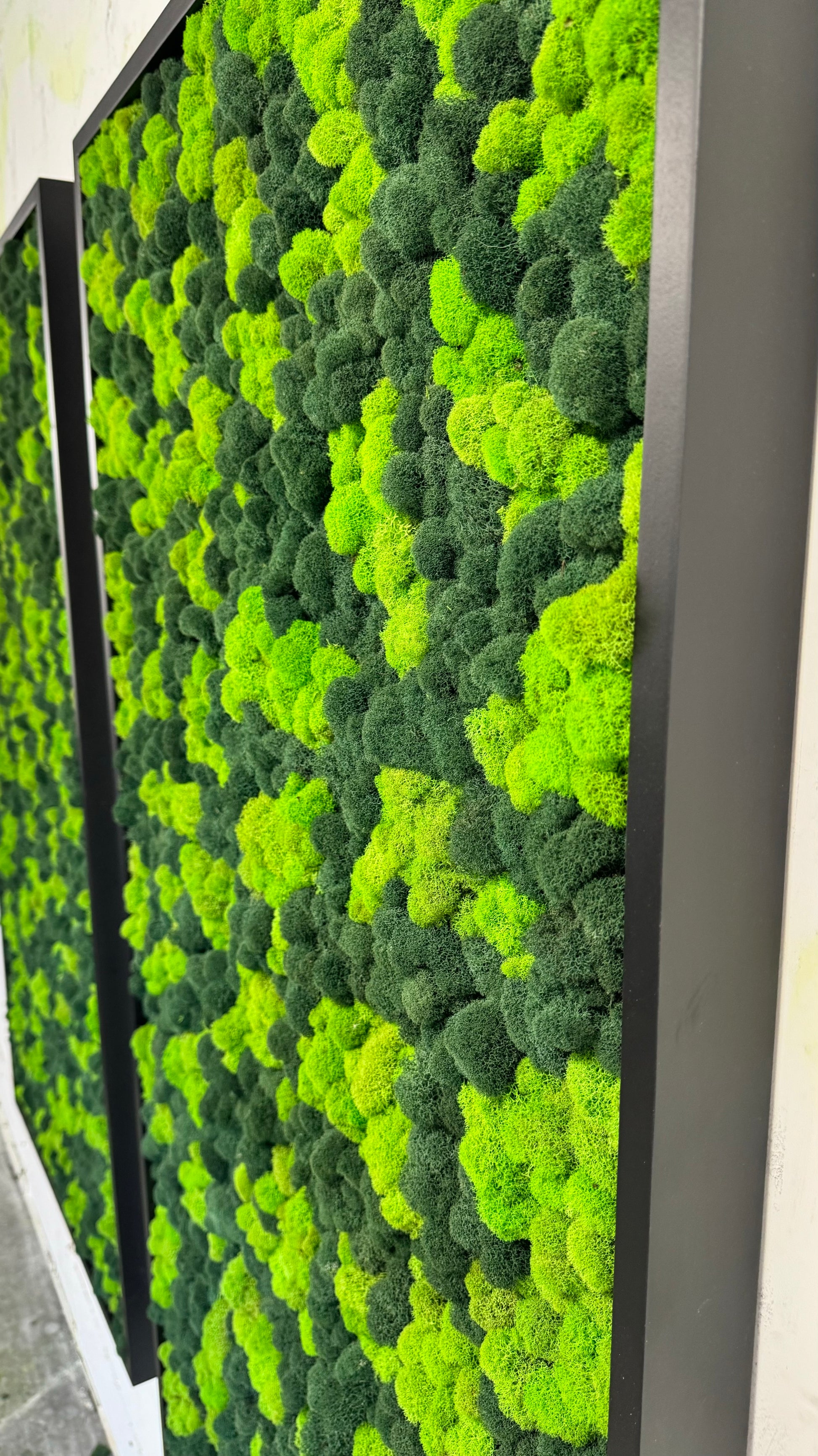 Our solid reindeer moss art Panel is a stunning display of natural beauty and craftsmanship. The piece is created using a thick layer of reindeer moss, carefully selected for its vibrant green color and soft, lush texture.