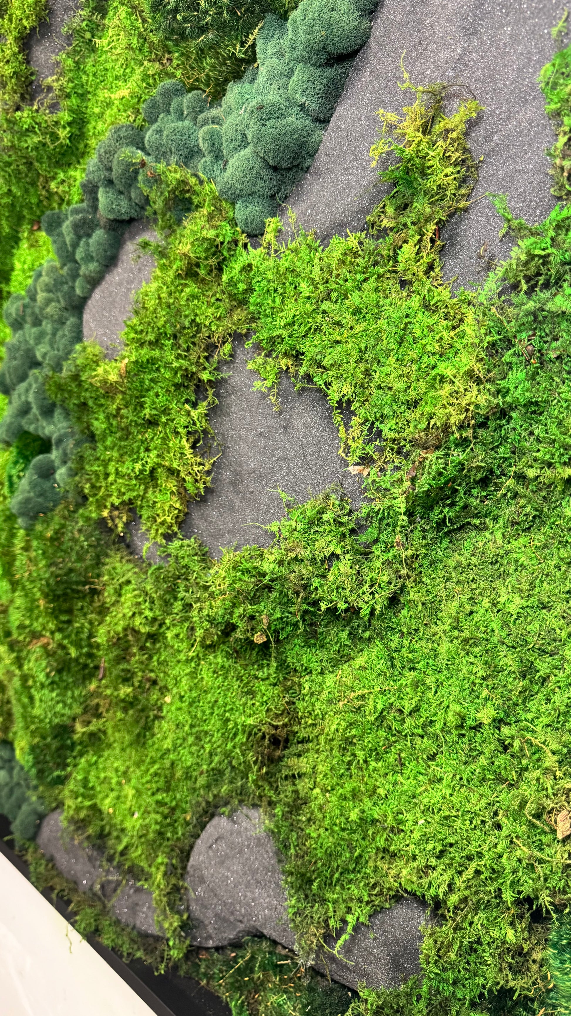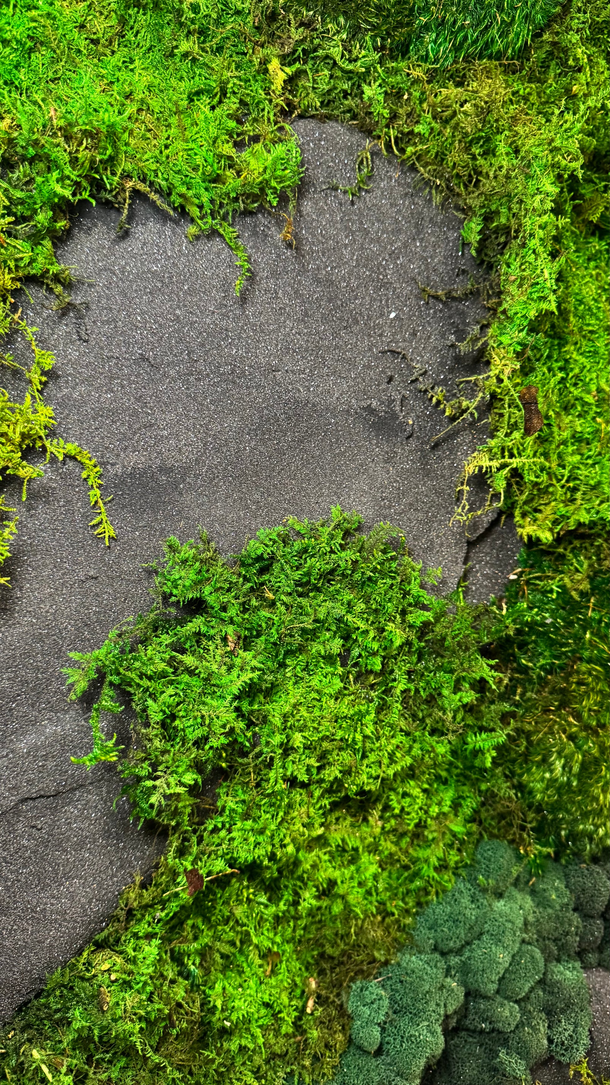 - Three species of sustainably preserved moss, artistically arranged