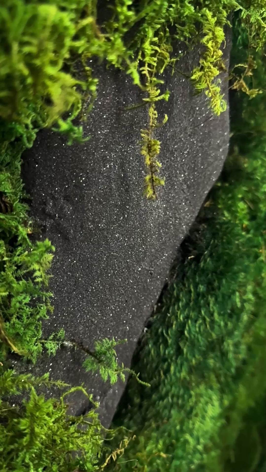 A unique atmosphere where mystery meets elegance. Black Onyx Forest is a striking biophilic sculpture that invites quiet contemplation and grounded luxury. This handcrafted composition features sculpted faux onyx-like boulders with deep grooves. Layers of preserved moss—including three distinct varieties, appear to grow organically from the rock’s surface, crawling into fine black sand that anchors the piece in tactile, timeless contrast.