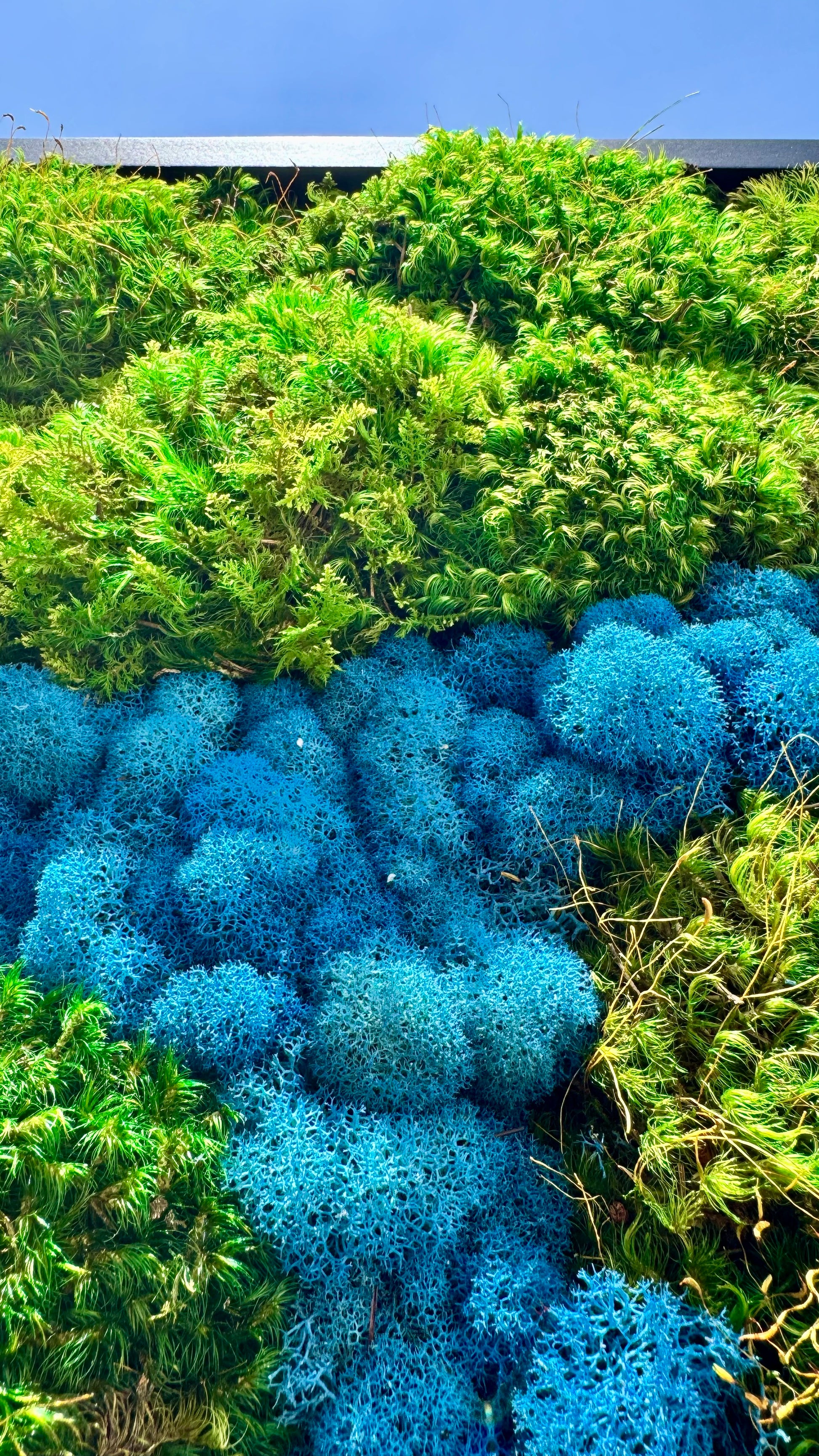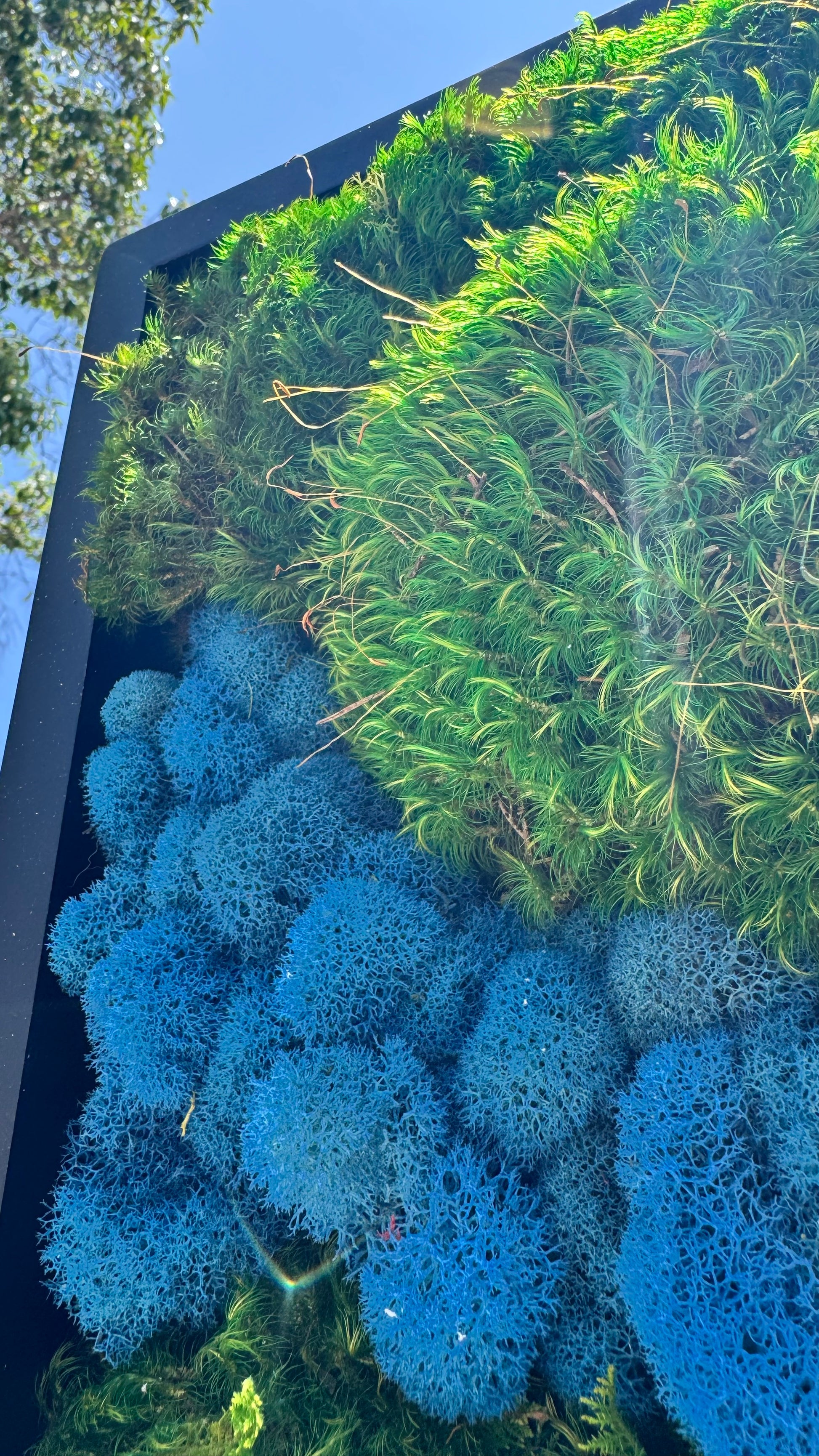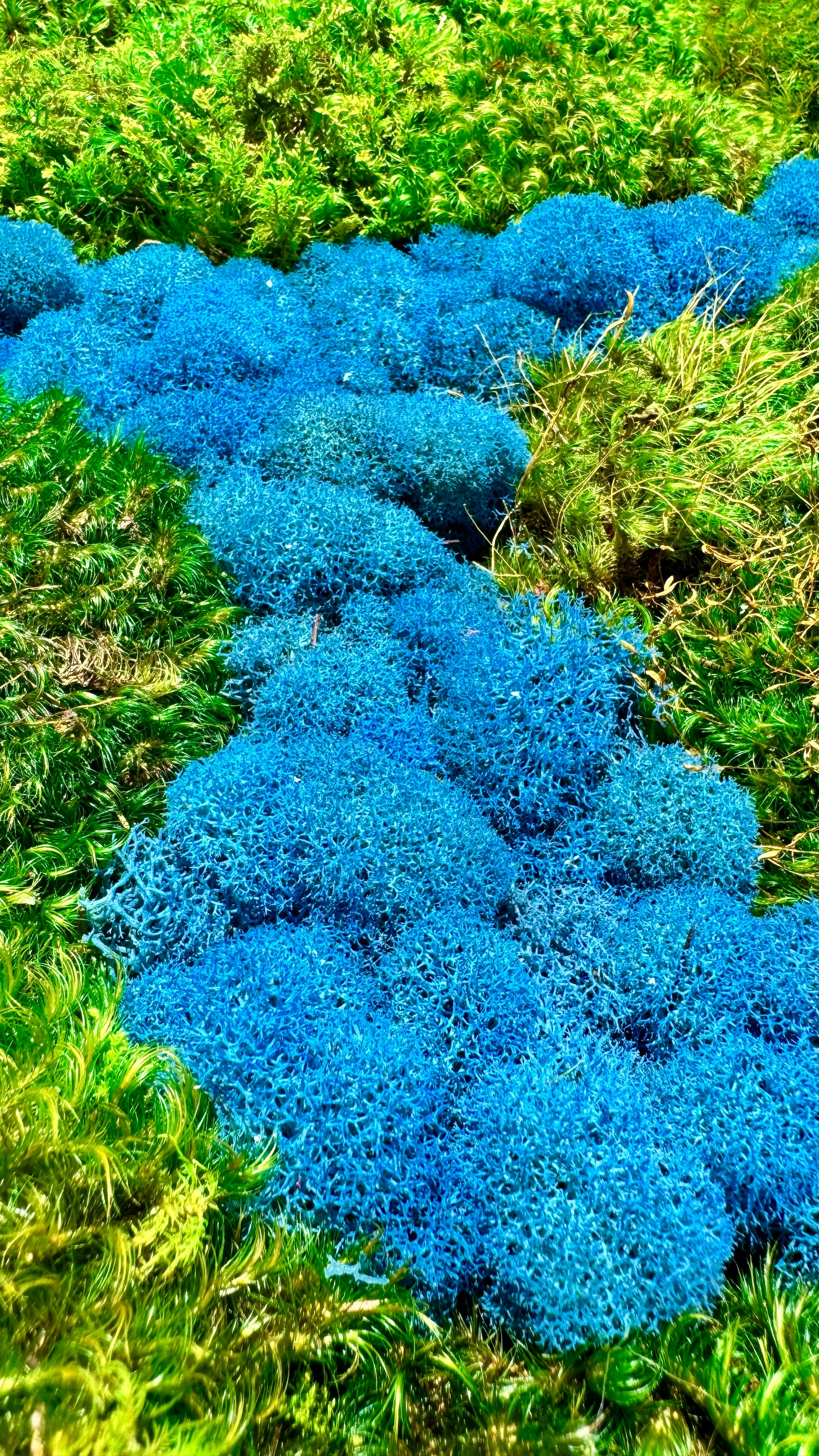 Where nature meets quiet strength. Enchanting River flows across three handcrafted frames, weaving a story of movement, contrast, and calm. Vivid green mosses, lush, preserved, and full of life, cradle a striking current of deep blue reindeer moss, creating the illusion of water threading through a living landscape. Every element is placed by hand, with intention and artistry.