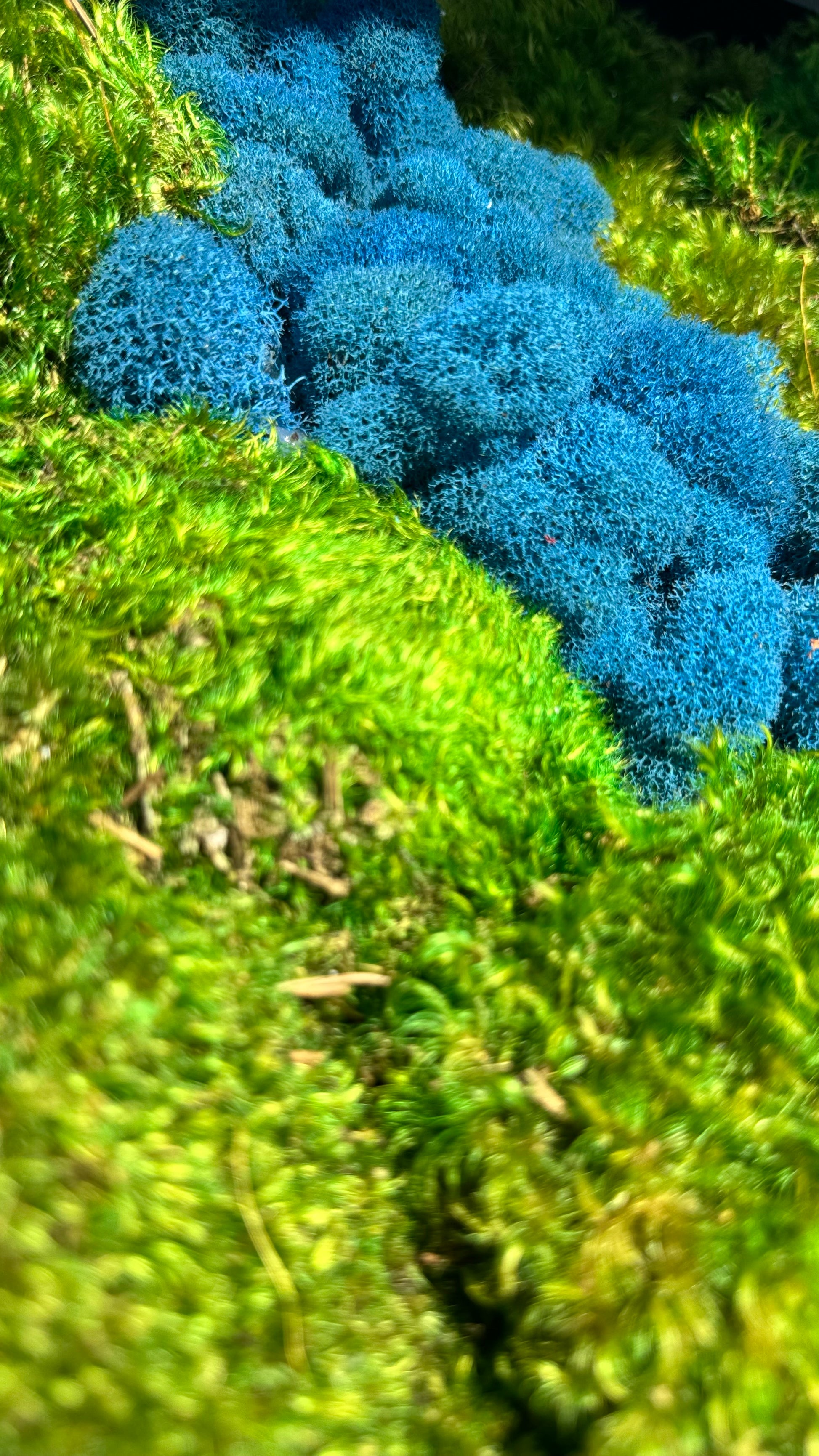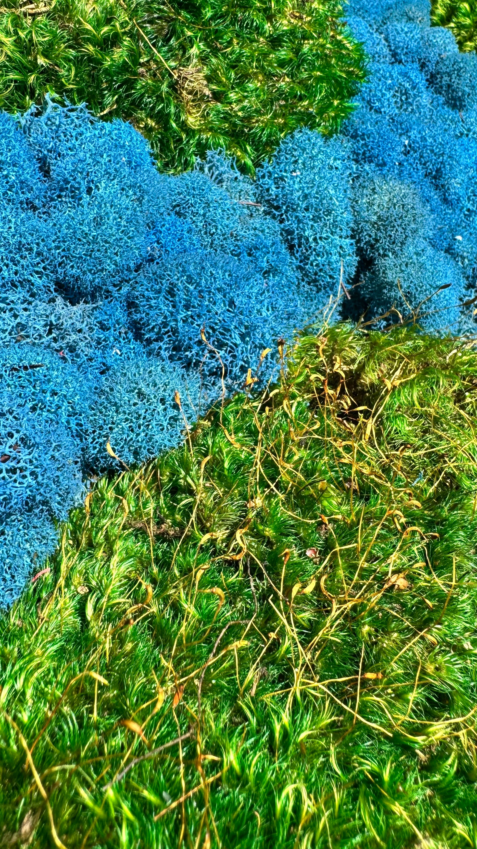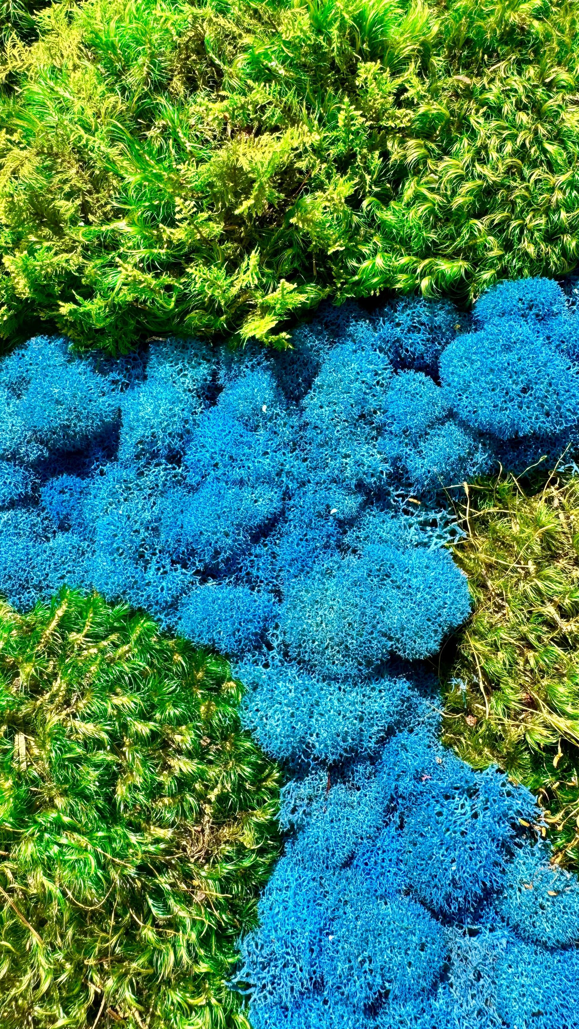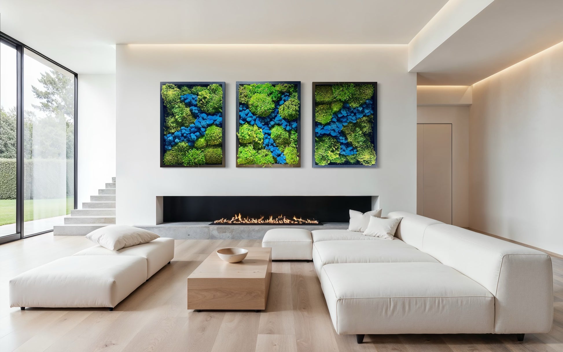 Where nature meets quiet strength. Enchanting River flows across three handcrafted frames, weaving a story of movement, contrast, and calm. Vivid green mosses, lush, preserved, and full of life, cradle a striking current of deep blue reindeer moss, creating the illusion of water threading through a living landscape. Every element is placed by hand, with intention and artistry.