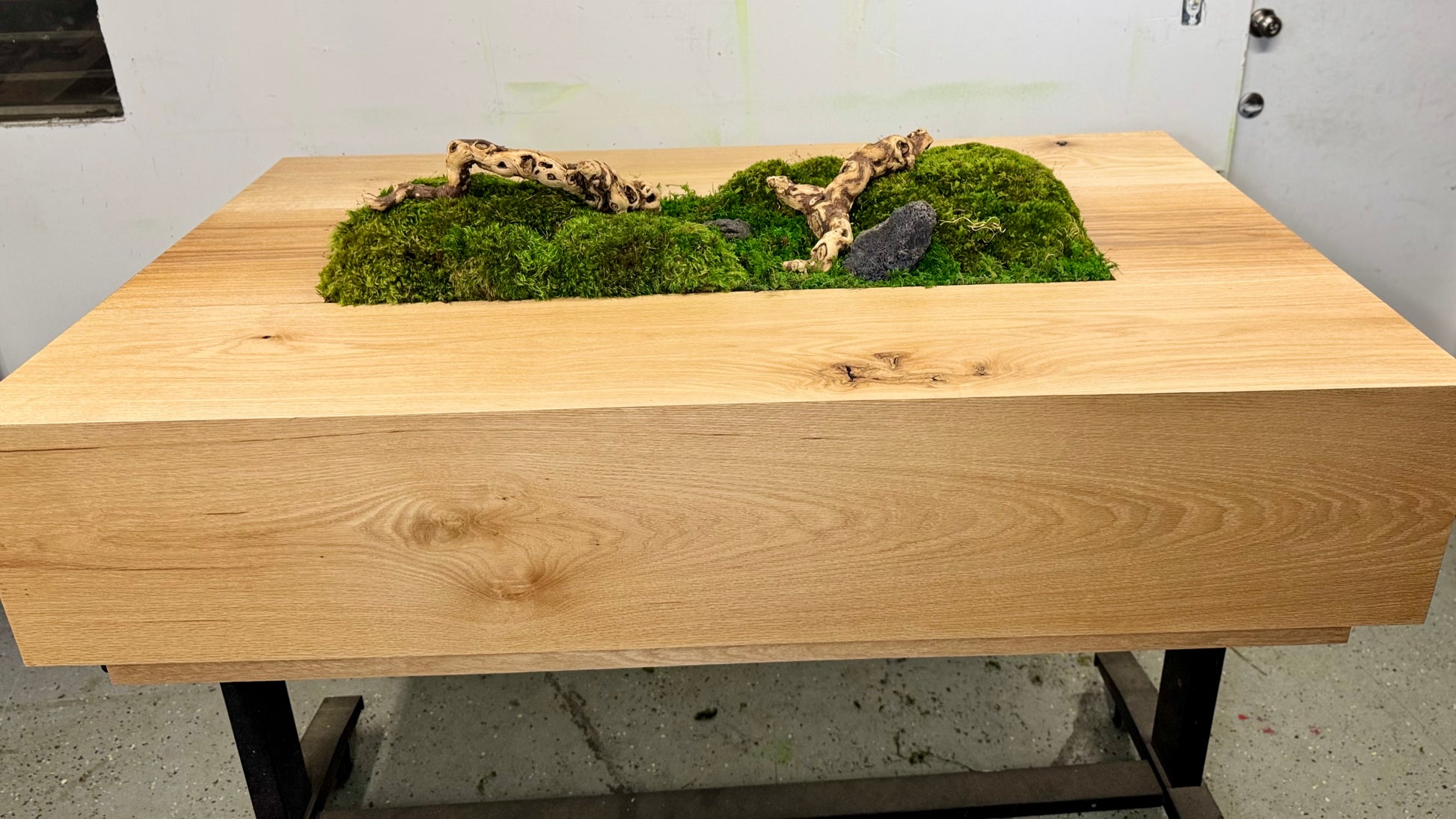 - Avoid placing liquids, heat, or sharp objects directly on the moss or wood surface