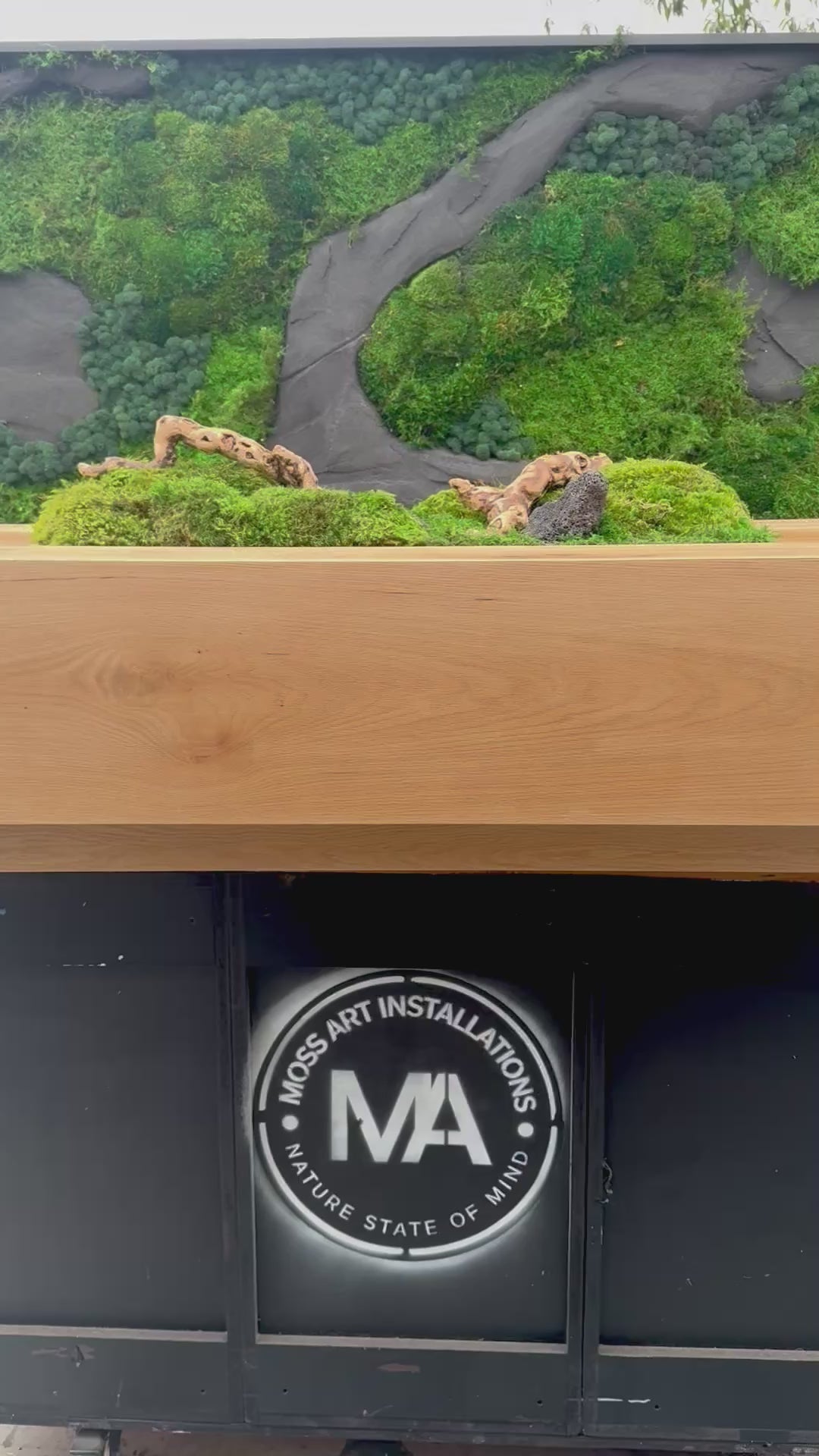 - Built-in, custom moss arrangement featuring preserved green moss, black lava stone