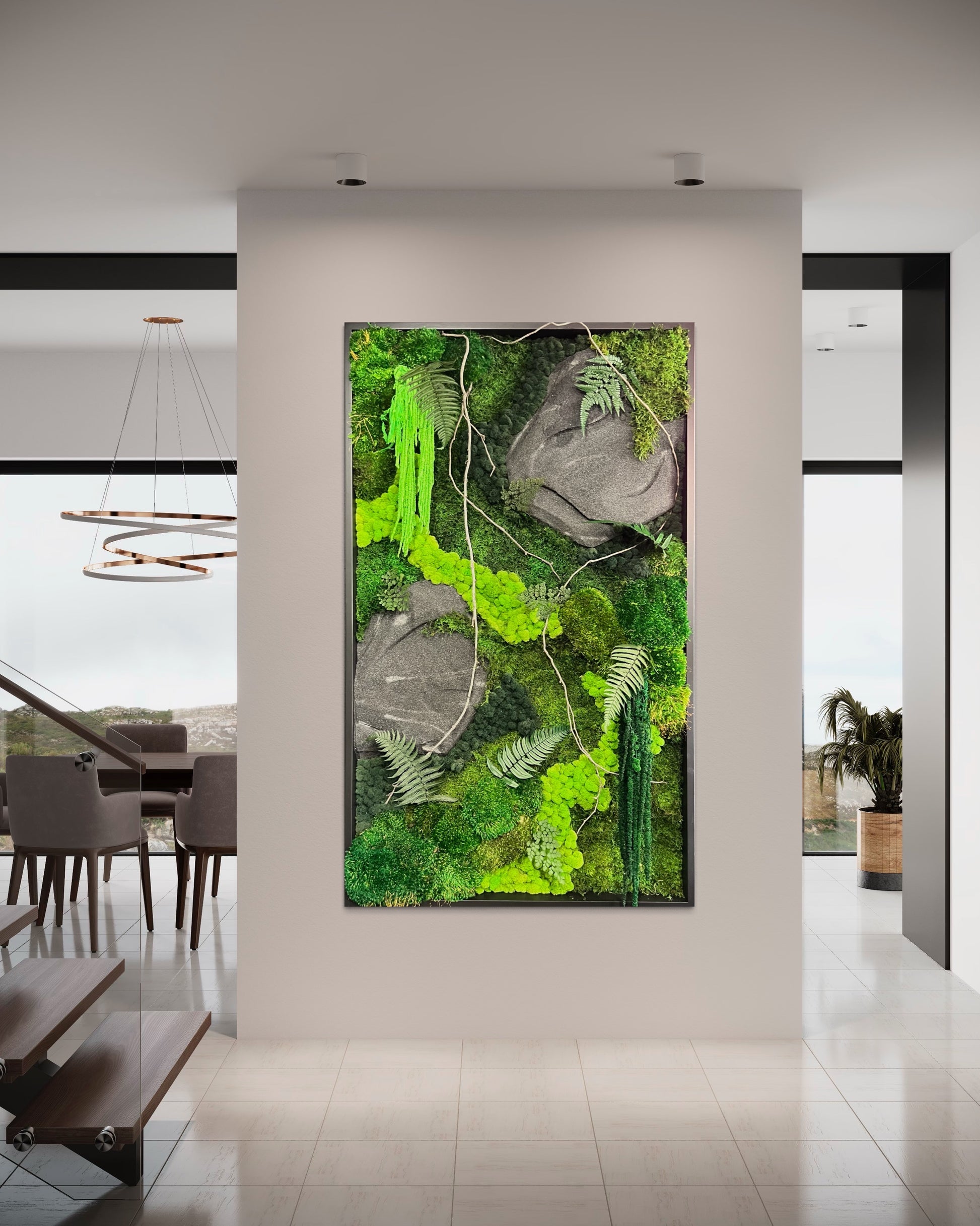 Moss Wall Art With Faux Rock 36"x60"x3.5" dia. shown