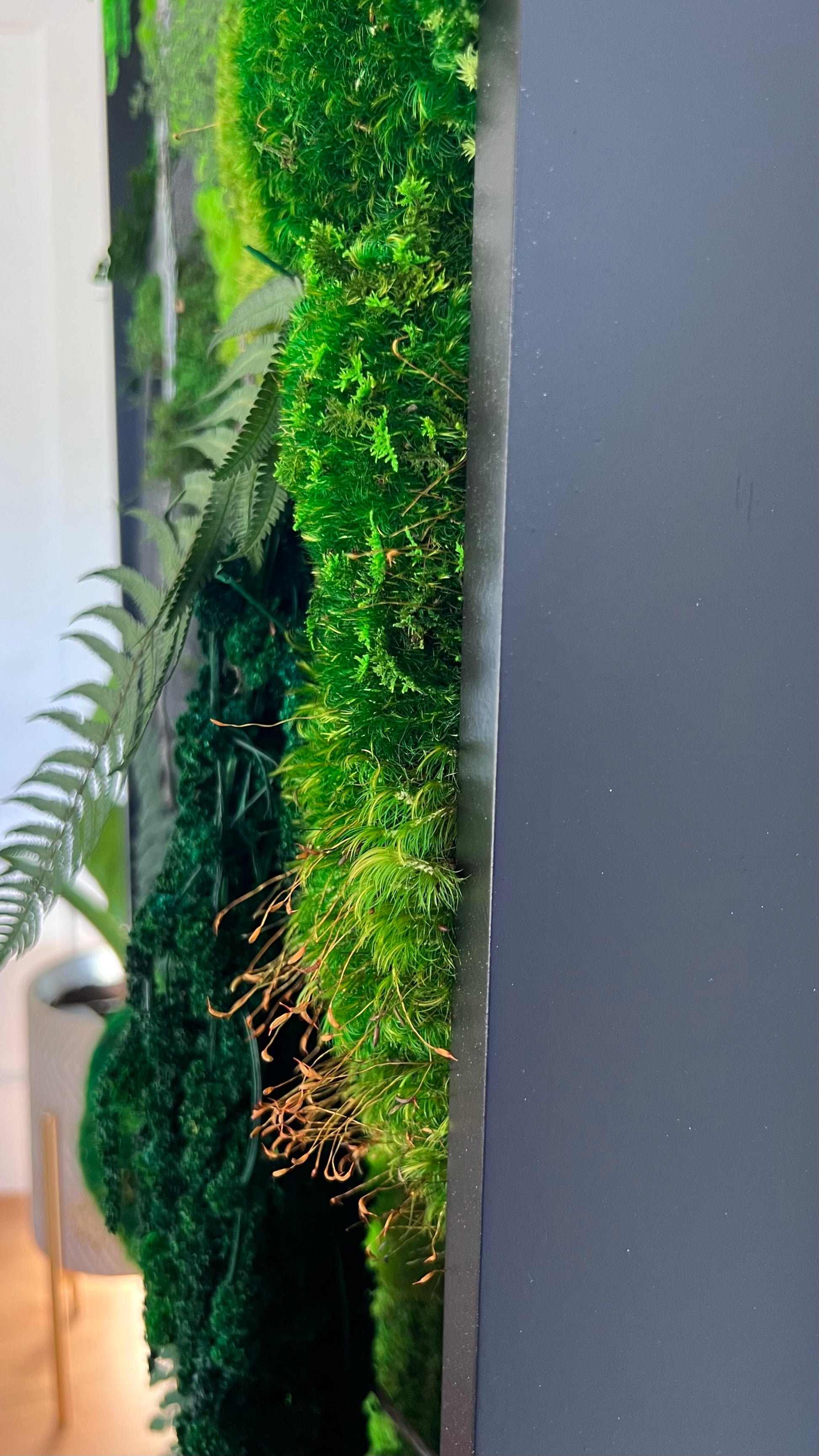 Transform your space with this captivating and unique Moss Wall Art featuring faux rocks, preserved moss, ferns, amaranths, and vine roots. Handcrafted by James, this one-of-a-kind piece brings the beauty of nature indoors, creating a serene and organic atmosphere in your home or office.