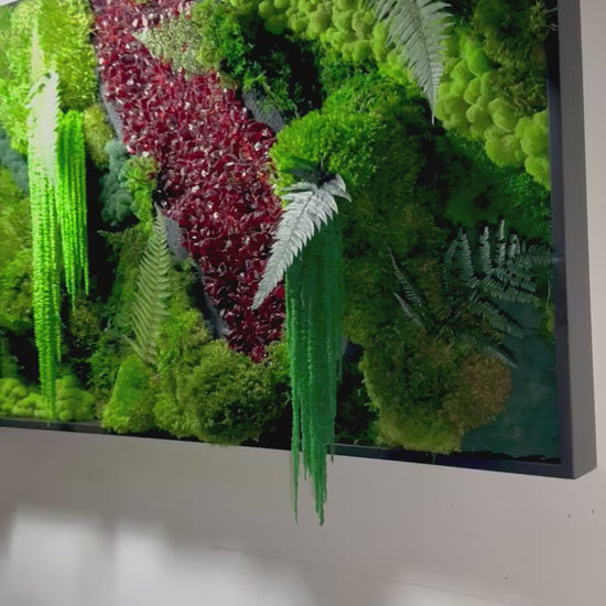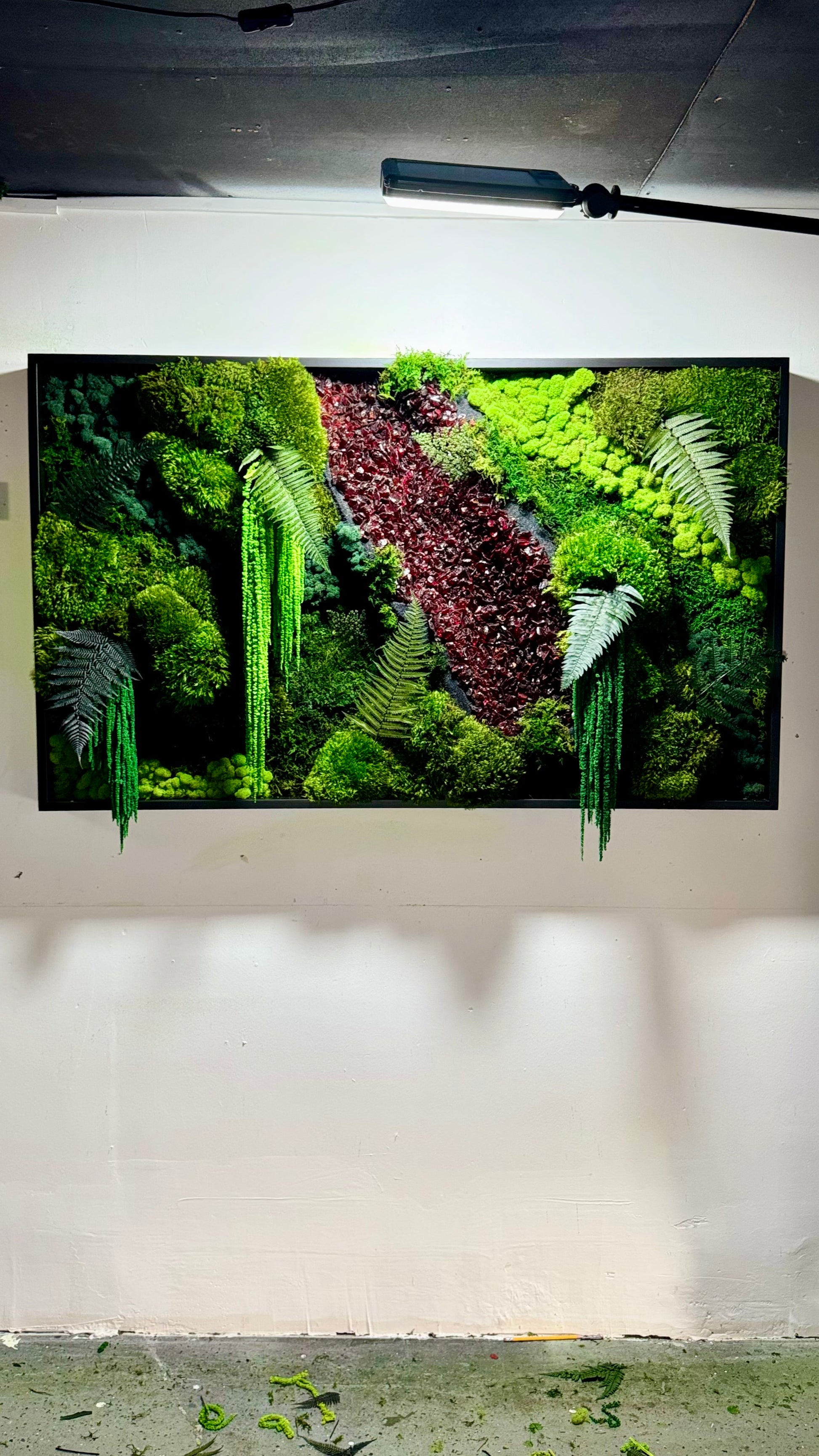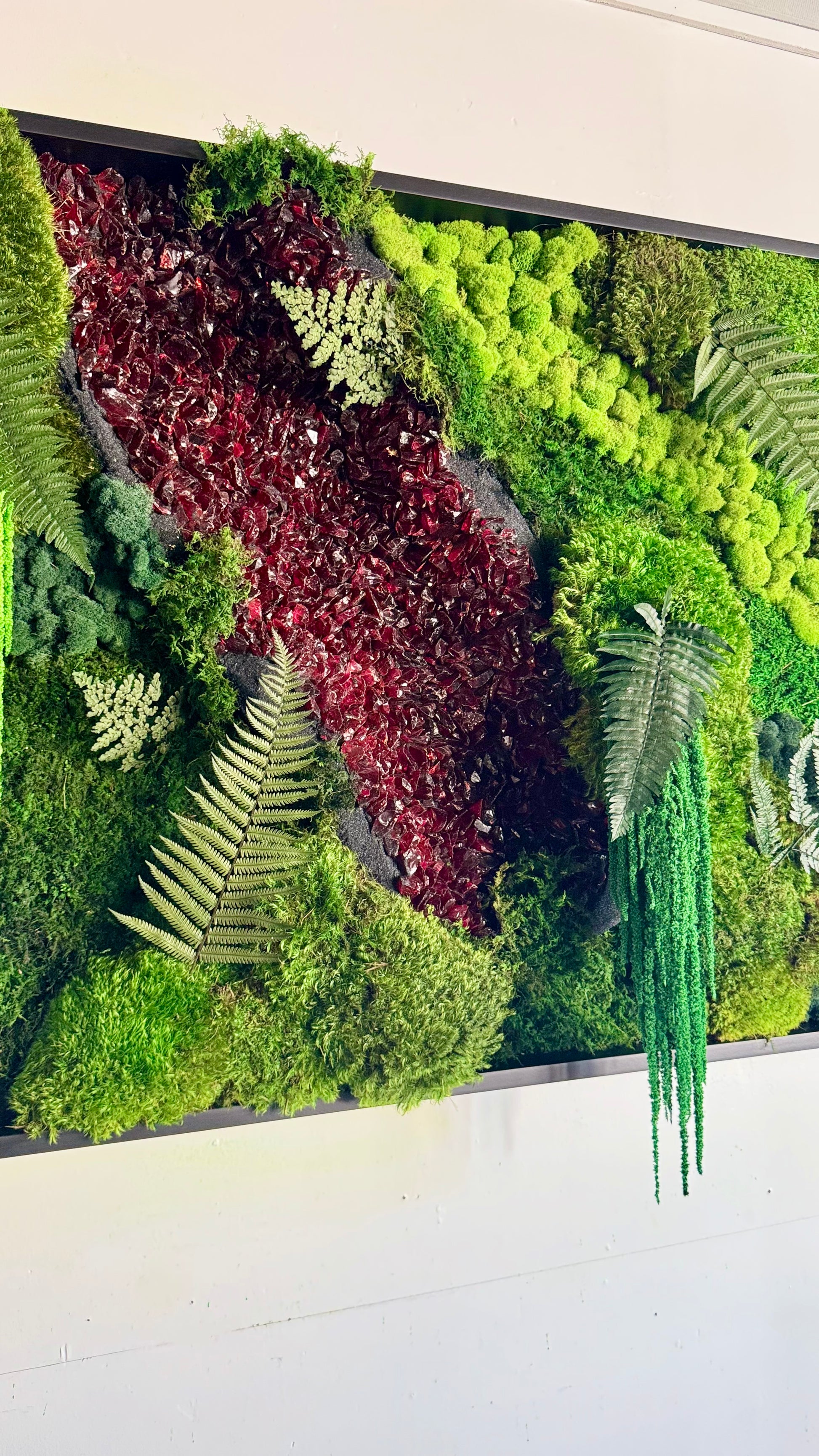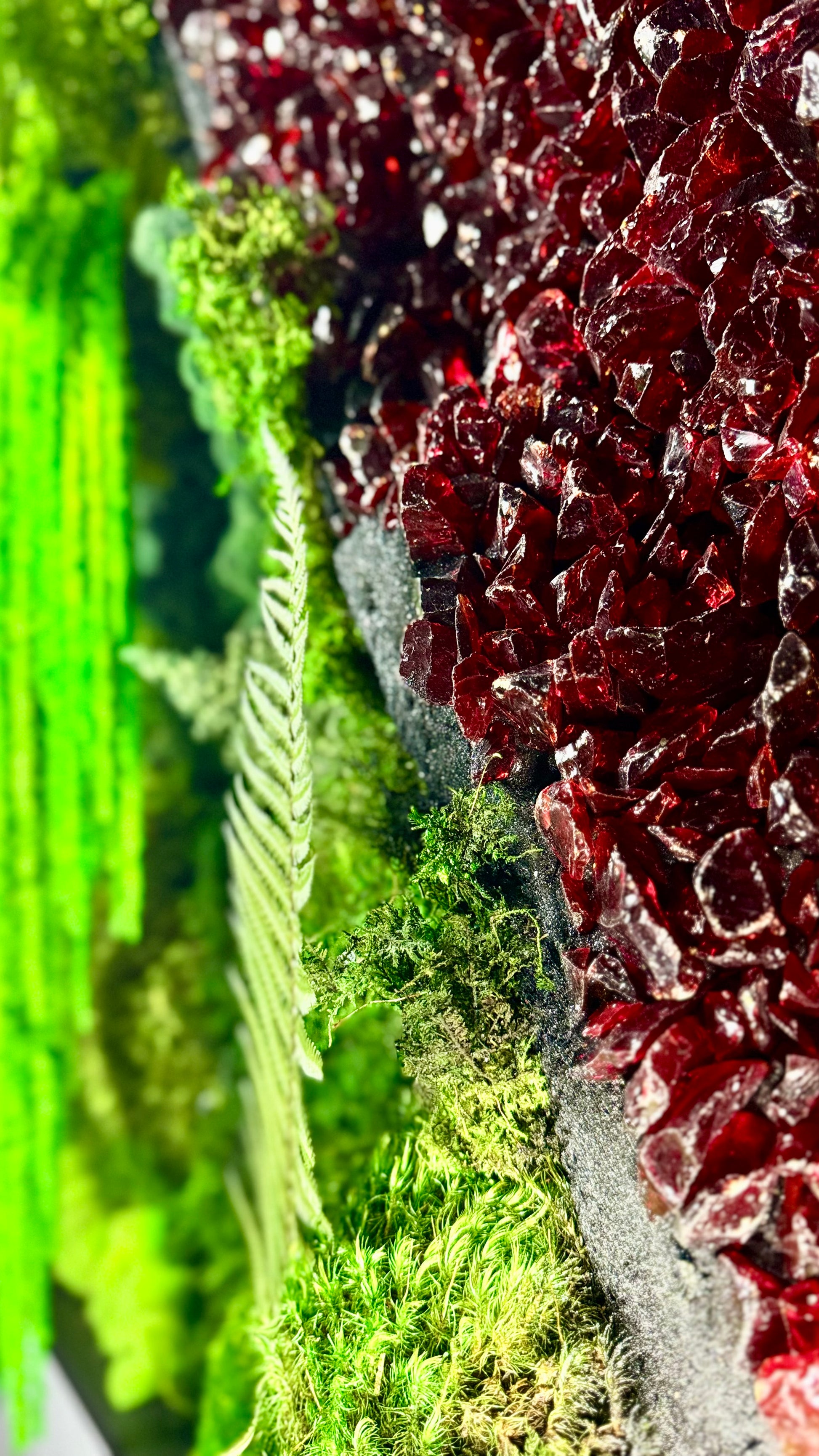 The Amethyst is an art piece inspired by the hidden beauty found beneath the surface of the earth. Layers of preserved moss and natural textures form an organic landscape that evokes the raw elegance of earth’s interior; where minerals, stone, and life intertwine in quiet harmony.